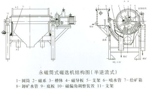 其原理是當礦漿進入磁區時,其中強磁性礦物被吸附在圓筒表面,弱磁性和非磁性礦物被甩掉排出,而吸附在圓筒表面上的強磁性礦物隨圓筒旋轉,被帶出磁場區,用沖洗水沖入精礦槽中,完成分選作業。